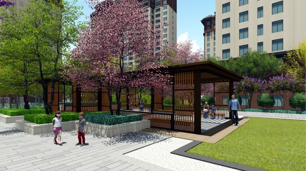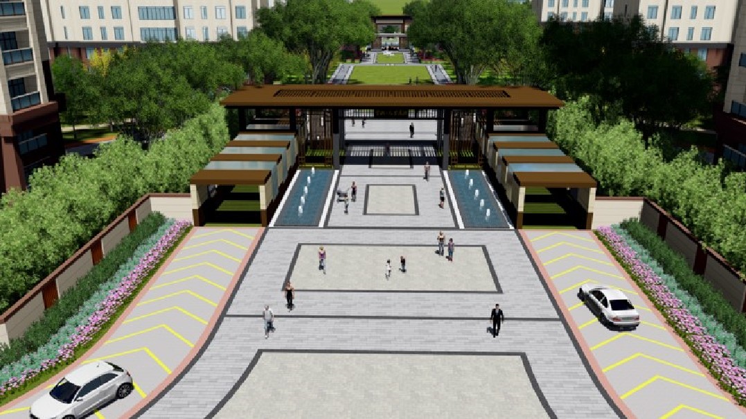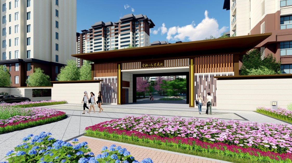 設(shè)計理念:新中式風(fēng)格,大門造型采用方頂,平直線條來打造,凸顯其莊嚴(yán)、肅穆、大氣之感,基于小區(qū)的功能以及使用人群的屬性,打造運(yùn)動空間、休閑會客空間、靜謐空間。