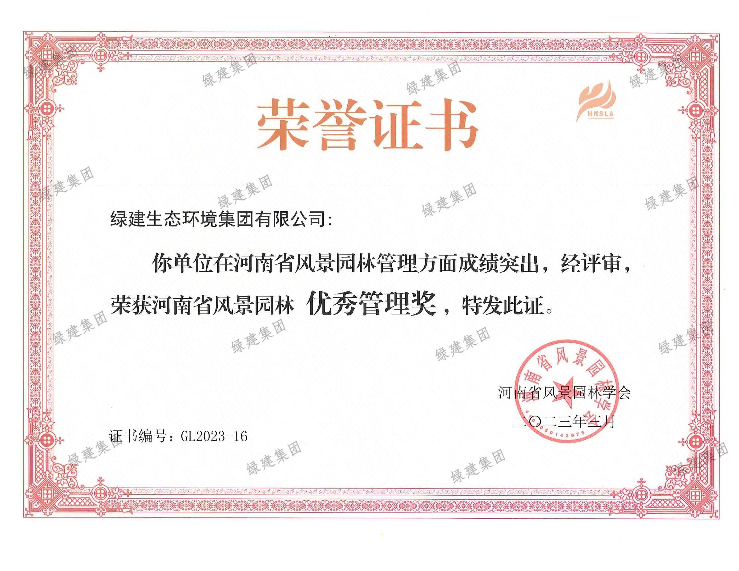2022年度河南省風景園林優秀管理獎