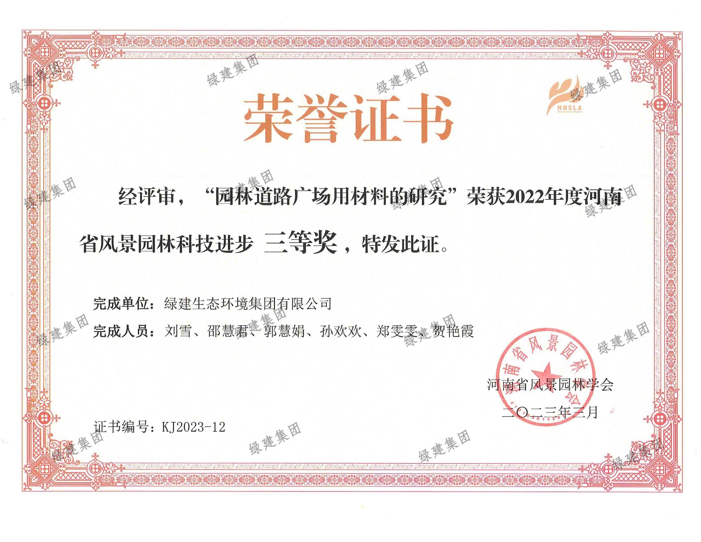 2023年度河南省風(fēng)景園林科技進(jìn)步獎(jiǎng)三等獎(jiǎng)