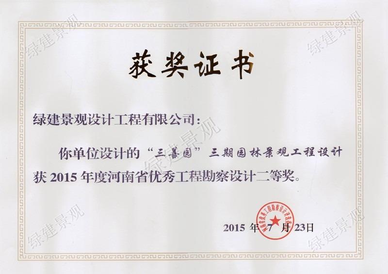 2015年河南省優(yōu)秀工程勘察設(shè)計(jì)二等獎(jiǎng)(三善園)