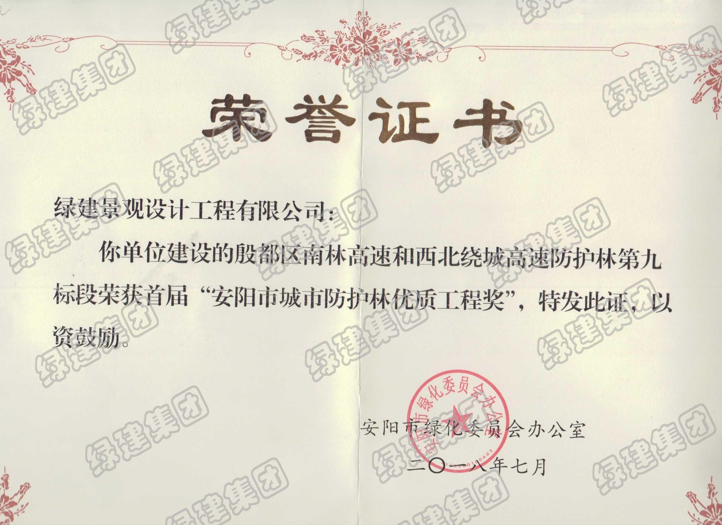 榮獲首屆安陽城市防護林優質工程獎