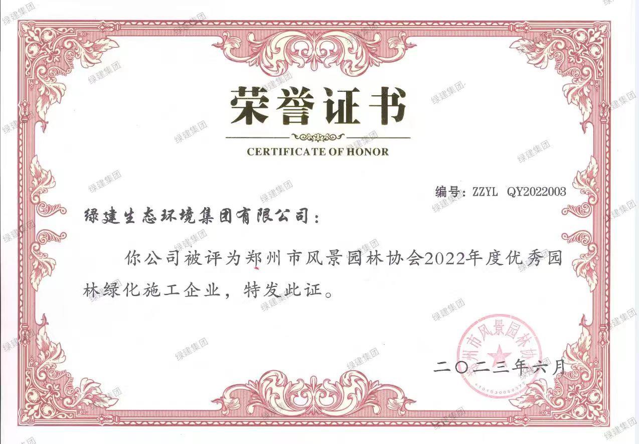 2022年度鄭州市風景園林協會優秀園林綠化施工企業
